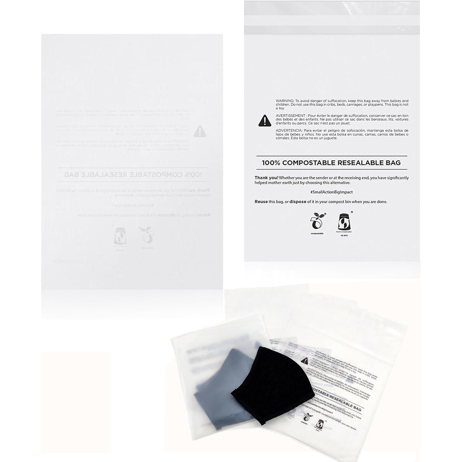 Made from PBAT+PLA, clear printing, these Self-Adhesive garment bags protect clothes and are certified to biodegradable completely, leaving no plastic residue.